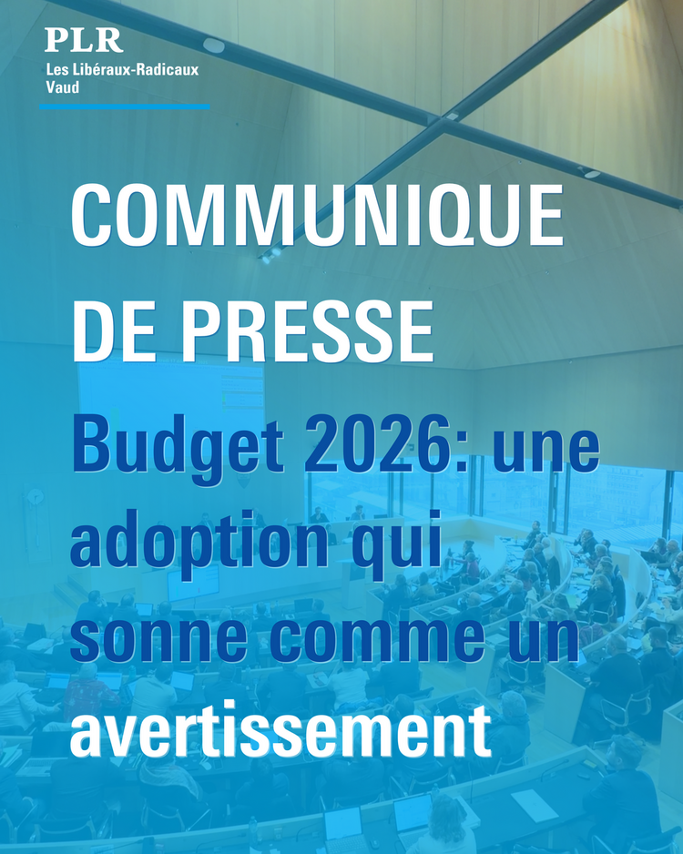 Le PLR Vaud tient à saluer et remercier tout particulièrement les membres PLR de la Commission des finances (COFIN) pour l’ampleur et la qualité de leur travail tout au long de ce processus budgétaire exigeant. Leur engagement, leur rigueur et leur sens des responsabilités ont été déterminants.